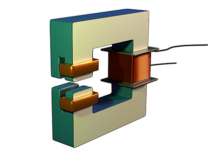 There is an electromagnet. The system current or a current proportional to the system current flows directly through the coil of the magnet. As a result, the alternating current flowing through the coil produces alternatingly changing magnetic flux in the core of the electromagnet.