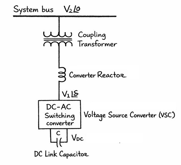 Now, the current flowing through the reactor between the VSC and the bus is:Since R is very small compared to the reactance, we can neglect the resistance R.