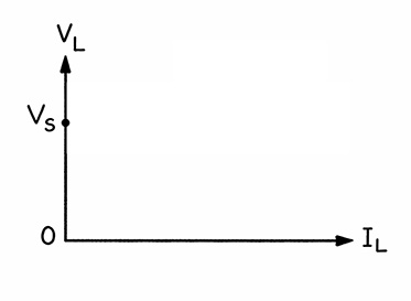 Now, we connect a load to the source and increase the load. In other words, we gradually reduce the connected resistance. As a result, the current through the load increases linearly. However, the terminal voltage of the source remains constant at VS​. So, we get a straight line parallel to the x-axis. This line indicates that at any current, the source gives the same voltage VS​.